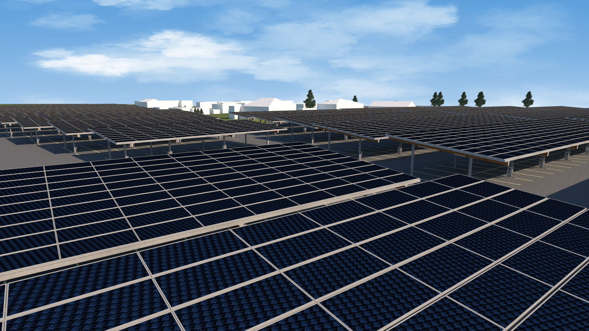 - zgradili fotonapetostni sistem z močjo 5,8 MWp in približno 10.000 sončnimi paneli na nadstreških za avtomobile